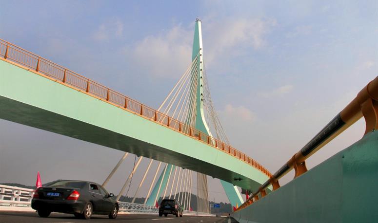 城南新區(qū)一號(hào)橋建成通車,有效地優(yōu)化和改善了綿陽南區(qū)的交通結(jié)構(gòu),極大地緩解了中心城區(qū)的交通壓力,從城東游仙區(qū)到城南新區(qū)不再繞行主城區(qū),城東到城南將縮短5公里左右的路程。大橋在人行層飛架橋面上方,形成并不規(guī)則的“S”形,為全漂浮體系,建設(shè)技術(shù)居世界領(lǐng)先地位。