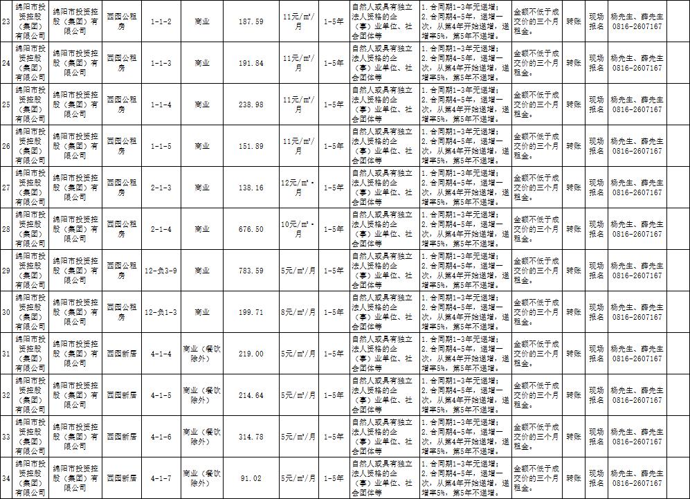 綿陽(yáng)市綿投商業(yè)運(yùn)營(yíng)管理有限責(zé)任公司資產(chǎn)出租公告