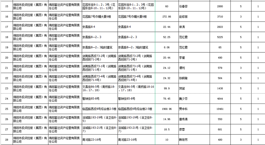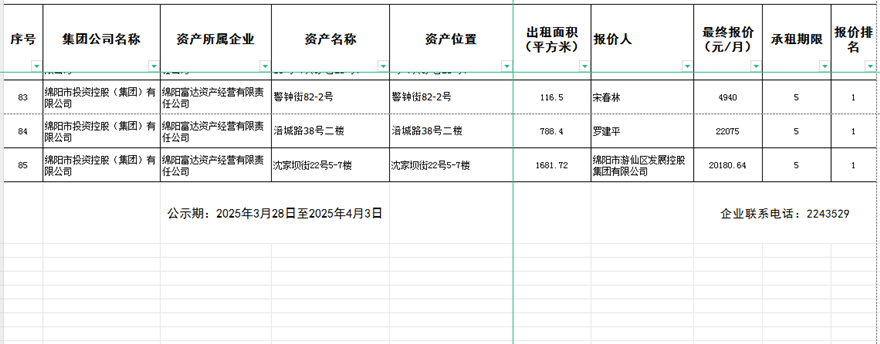 綿陽(yáng)富達(dá)資產(chǎn)經(jīng)營(yíng)有限責(zé)任公司出租結(jié)果公示
