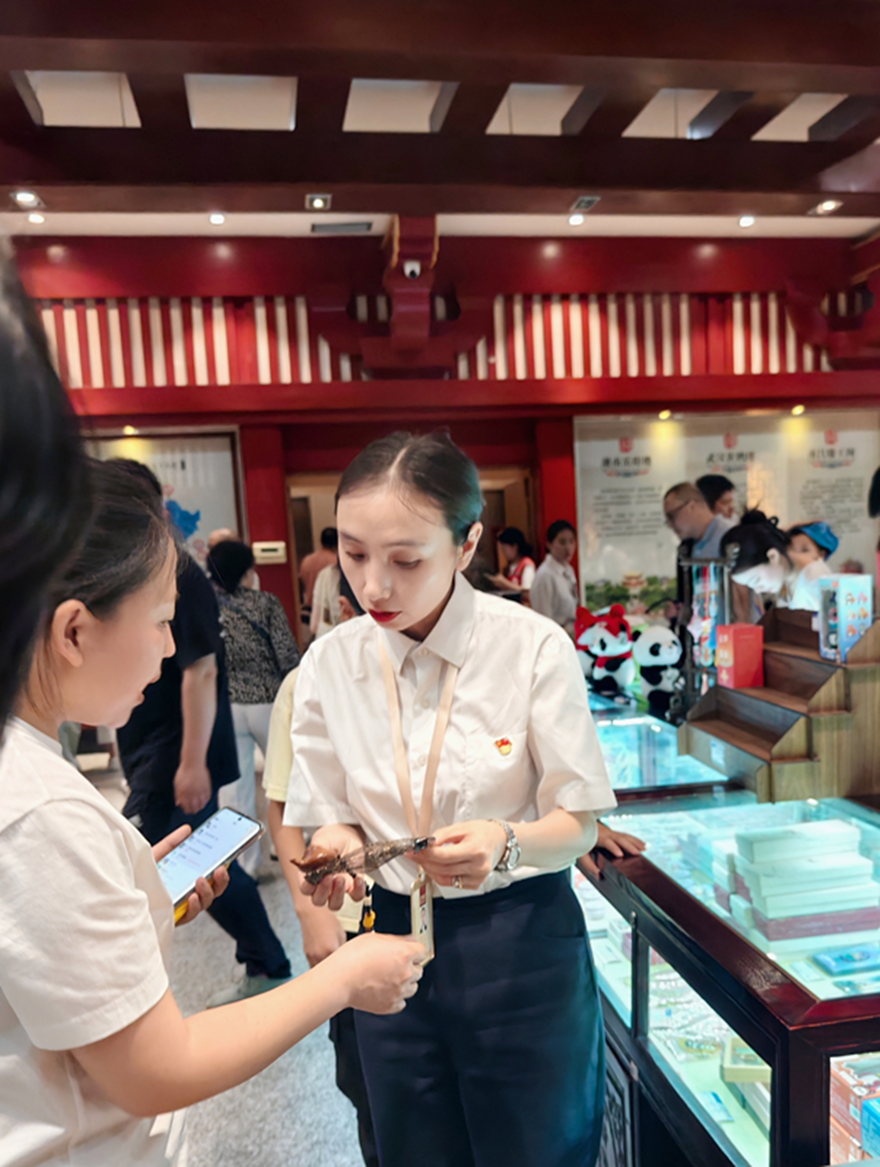 “五一”期間,景區(qū)在龜山打造“非遺工坊”,推出“漆扇制作—草編體驗(yàn)—詩(shī)詞題寫—場(chǎng)景打卡”一體化體驗(yàn)鏈,可參與、可帶走、可傳播,突破“靜態(tài)展示”傳統(tǒng)模式,通過“活態(tài)傳承+互動(dòng)賦能”推動(dòng)非遺文化創(chuàng)造性轉(zhuǎn)化,每天吸引逾千人次游客參與。